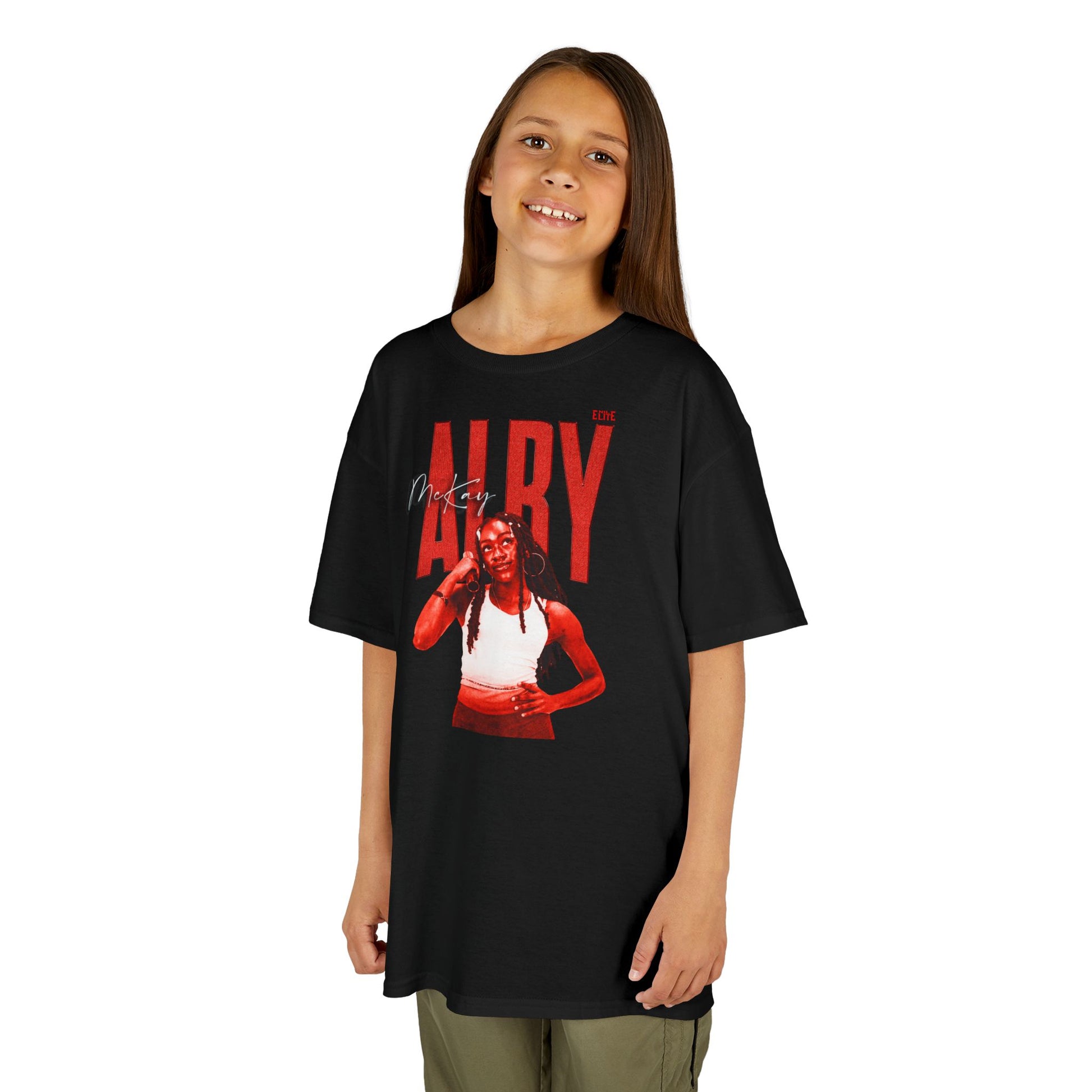 The kids heavy cotton tee is perfect for everyday use. The fabric is 100% cotton for solid colors. The shoulders have twill tape for improved durability. The collar is curl resistant due to ribbed knitting. There are no seams along the sides.